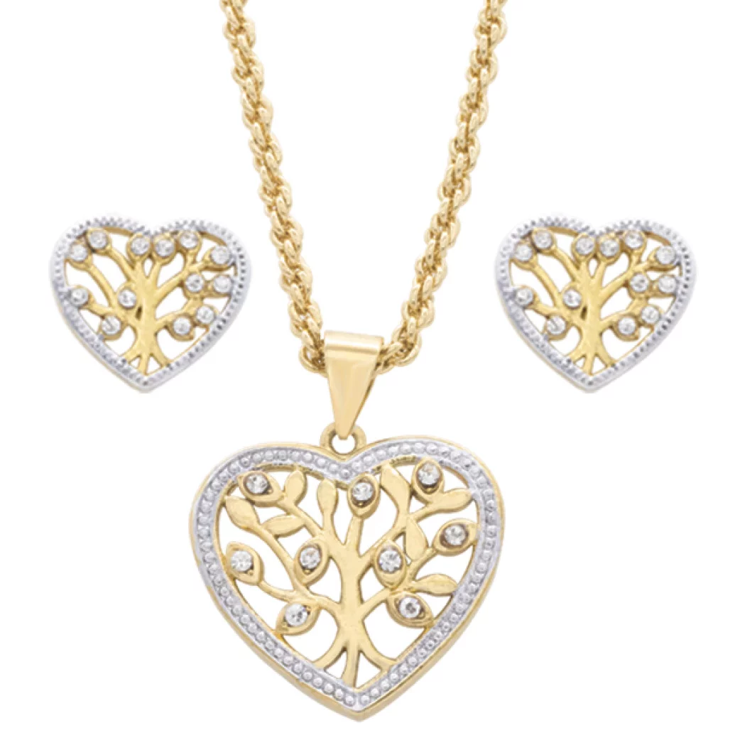 Tree Of Life Heart Pendant, Chain and Earring Set